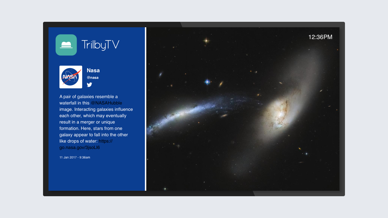 You can display your logo, time, date, or other information in any corner of your TrilbyTV screen. Set these globally via the Player Dashboard or individually per player.