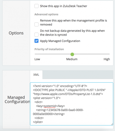 Depending on your specific MDM, you will either need to upload that file, copy and paste the contents into your MDM, or manually create the Key/Value pair required for the app. To find this, open the downloaded file in a plain text editor, like Notepad, Atom or SublimeText, and enter the key name systemid and copy and paste the string value (the random letters and numbers) from the file into your MDM.
