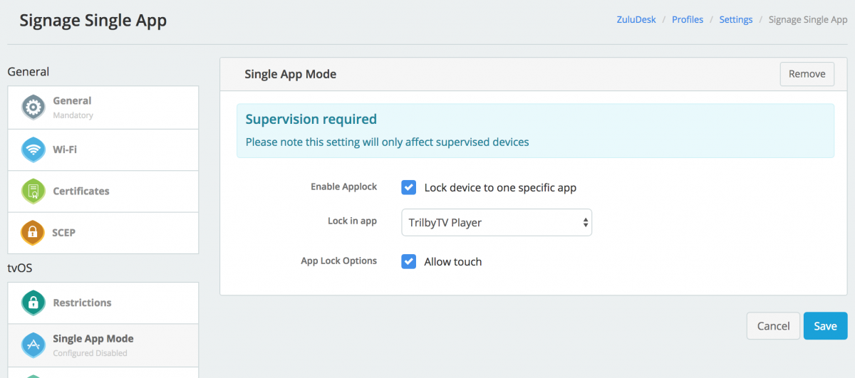Managed App Config requires TrilbyTV Player for AppleTV v4.1.3 or higher