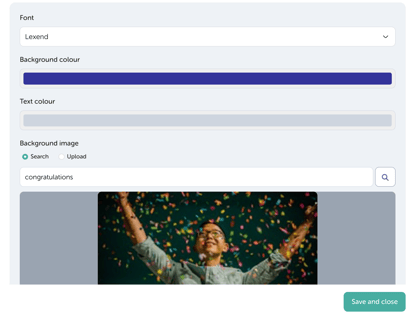 Optional: You can choose to customise your Super Stats by changing the font, background colour and text colour, as well as add a background image, either search our gallery for a background image or upload your own.