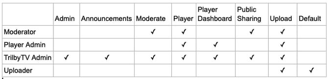 Permissions are used to determine who can access certain features of TrilbyTV, such as who can upload or moderate content and who can manage your TrilbyTV account or Players.