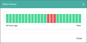 Players should be checking in once every minute. Click the Status history button to view the check-in history for the past 24 hours. If your player is unable to check in you'll notice a red line - this could be indicative of wifi or network connection issues around that time. You can roll over for more information.