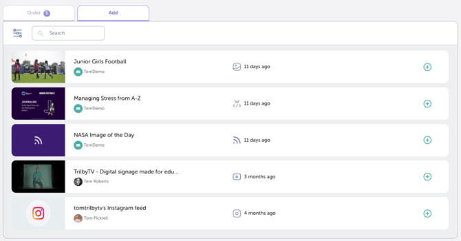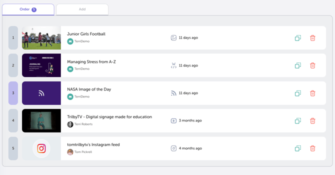 - Click on the Order tab, where you can then drag and drop your chosen content into the order you would like it to playback.
