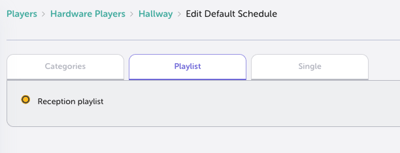 - Click the Default Schedule and select the Playlist tab if you'd like your playlist to display as default