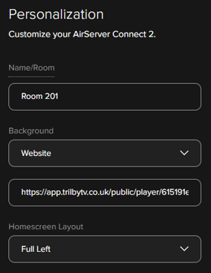 5. Now switch to your AirServer Device Management and under Personalization find Background.