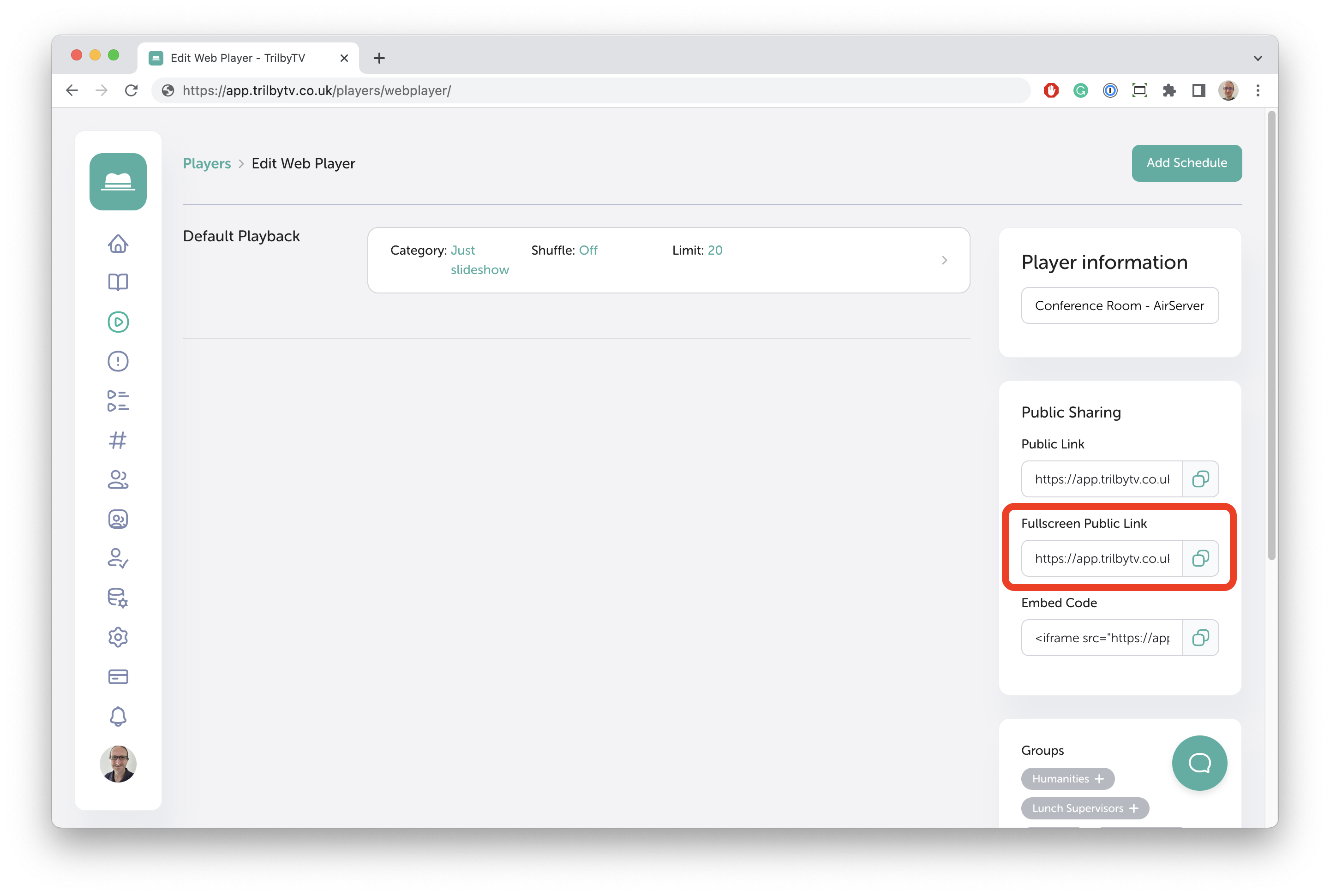 Web Players work just like your other player devices in that they can be set to show one or more categories, a Playlist or a Single item. See What are web players? for more information.