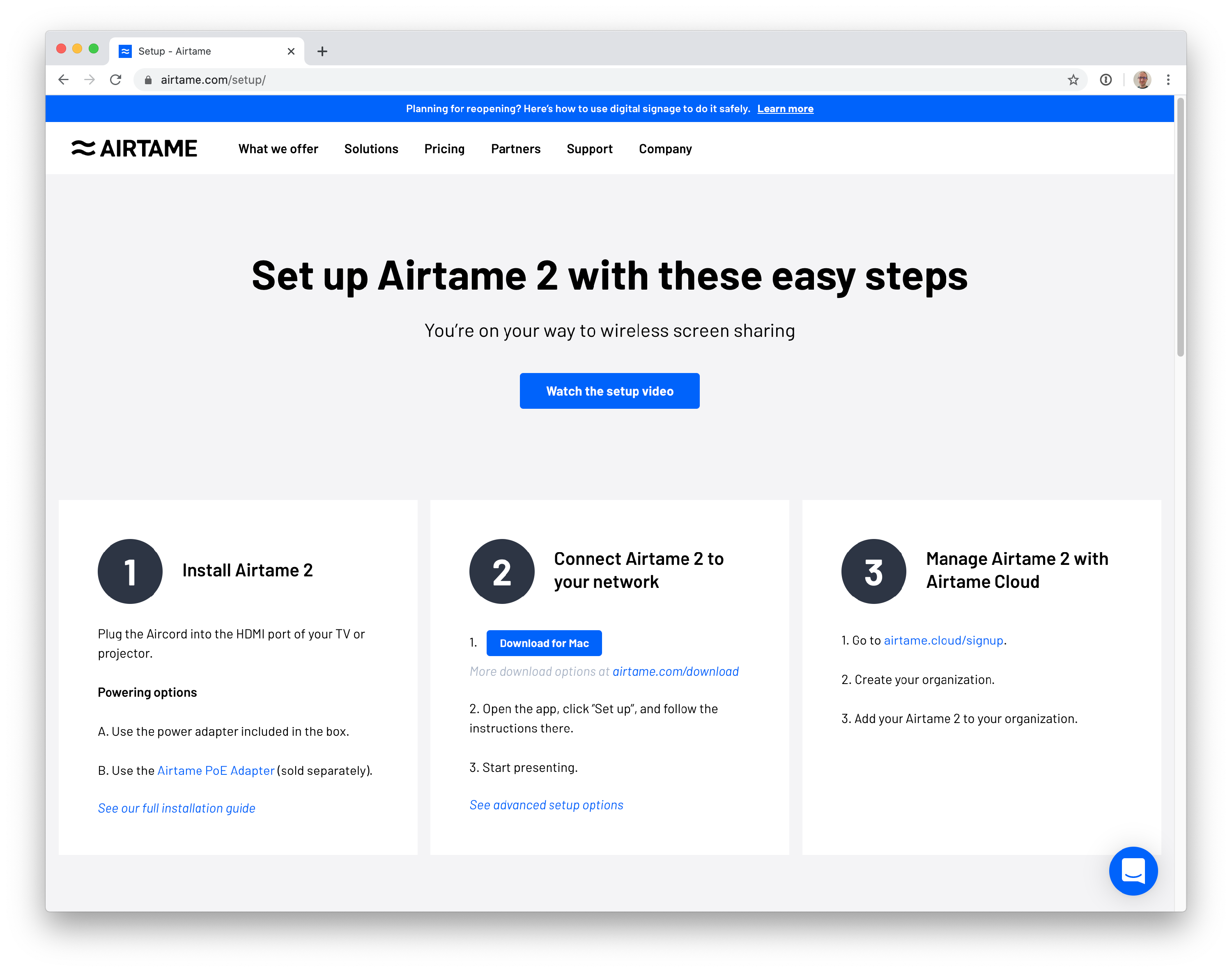 - Follow the setup instructions for your Airtame device in the box and on-screen.