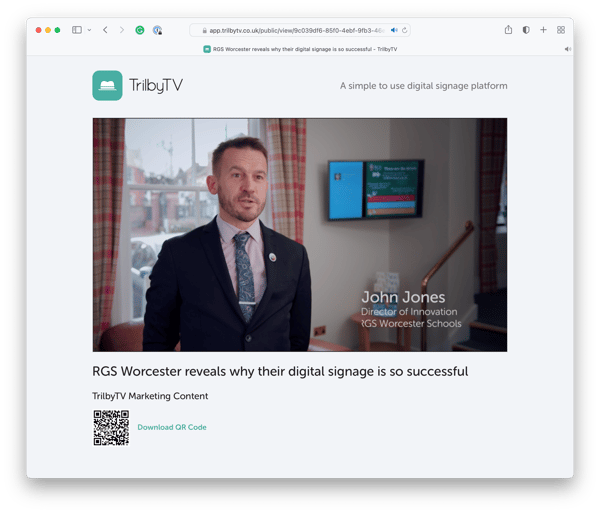 - Use the Embed code to include the video player on a webpage or in your VLE, or use the Public Link to share outside the school, via email, or social media.